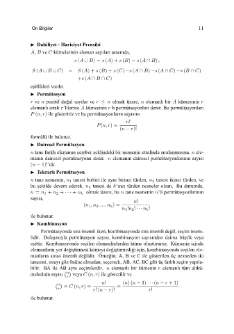 bilir. BA ile AB aynı seçimlerdir. elemanlı bir kümenin elemanlı tüm altkü