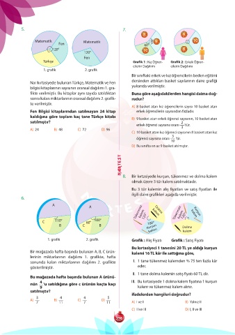 kaldığına göre toplam kaç tane Türkçe kitabı B) 9 basket atan erkek öğrenci sayısının, 10 basket atan