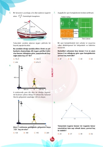 5. Bir kenarının uzunluğu a br olan eşkenar üçgenin 7. Aşağıda bir spor kompleksinin krokisi verilmiştir.