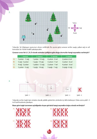 Buna göre kağıt tamemen açılıdğında oluşan görüntü hangi seçenekte doğru olarak verilmiştir?
