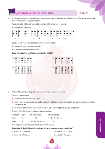 Arda 38 puan, Murat 35 puan alır ve oyunu Arda kazanır. YENİ NESİL SORU