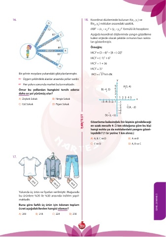 16. 18. Koordinat düzleminde bulunan A(x , y ) ve