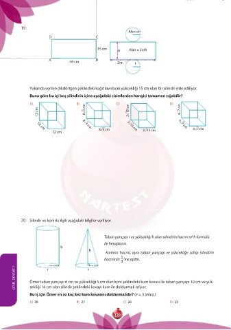 GENEL DENEME 7 Ömer taban yarıçapı 6 cm ve yüksekliği 5 cm olan koni şeklindeki kum kovası ile taban yarıçapı 10 cm ve yük-
