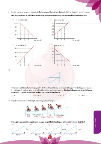 11. Boş bir havuzun içinde 50 lt su vardır. Bu havuzu doldurmak için dakikada 15 lt su akıtan bir musluk açılıyor.