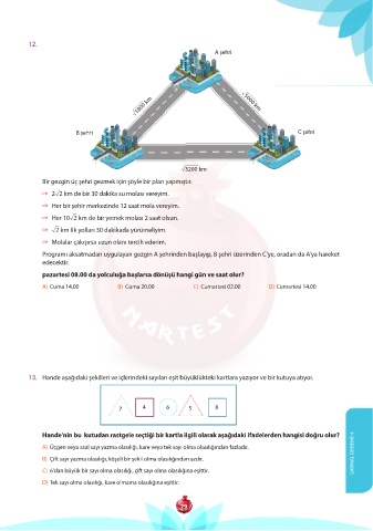 Programı aksatmadan uygulayan gezgin A şehrinden başlayıp, B şehri üzerinden C’ye, oradan da A’ya hareket