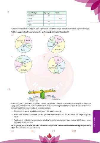 Yukarıdaki tabloda bir okuldaki 8. Sınıf öğrencilerin katıldıkları sosyal faaliyetler ve katılım sayıları verilmiştir.