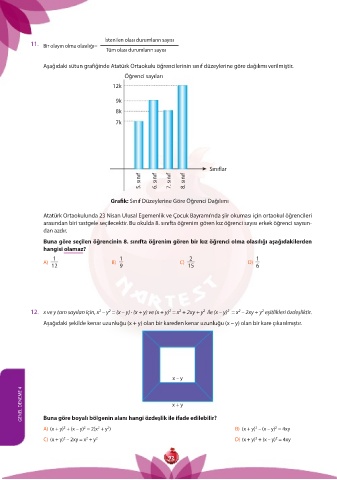 arasından biri rastgele seçilecektir. Bu okulda 8. sınıfta öğrenim gören kız öğrenci sayısı erkek öğrenci sayısın-
