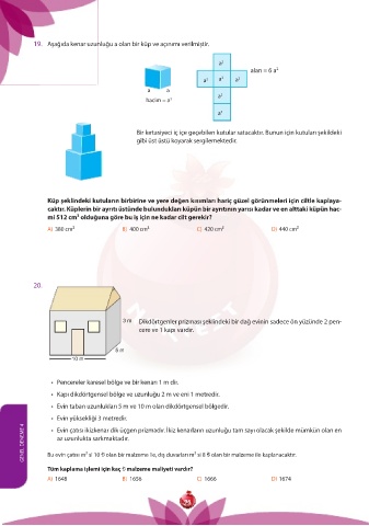 GENEL DENEME 4 Bu evin çatısı m² si 10 ¨ olan bir malzeme ile, dış duvarları m² si 8 ¨ olan bir malzeme ile kaplanacaktır.
