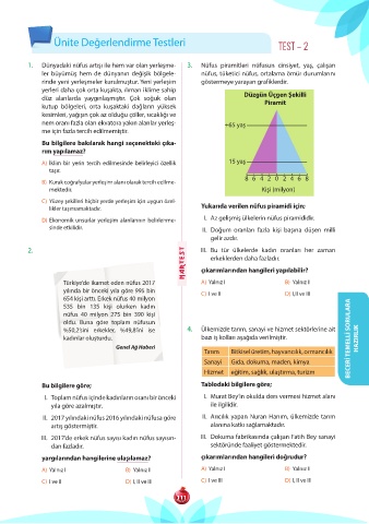 1. Dünyadaki nüfus artışı ile hem var olan yerleşme- 3. Nüfus piramitleri nüfusun cinsiyet, yaş, çalışan