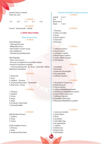 4. Avusturya-Macaristan – Panslavizm 1. Hicaz-Yemen (Savunma)