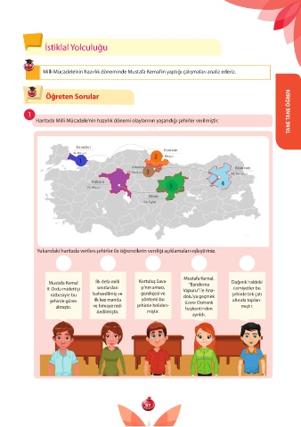 Haritada Milli Mücadele’nin hazırlık dönemi olaylarının yaşandığı şehirler verilmiştir.