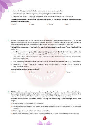 6. I. Dünya Savaşı sonucunda, 30 Ekim 1918’de Osmanlı Devleti Mondros Mütarekesi’ni imzalamıştı. Çok ağır şart-