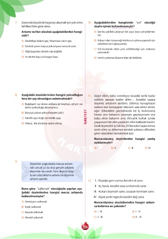 7. Sonunda büyük bir başarıya ulaşmak için yok olma 10. Aşağıdakilerden hangisinde “yol” sözcüğü