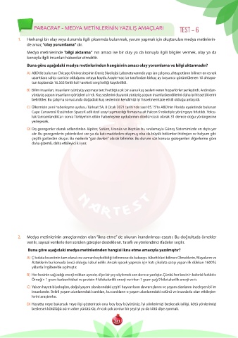 PaRaGRaF – MeDYa MetİnLeRİnİn YaZıLıŞ aMaÇLaRı TEST – 6
