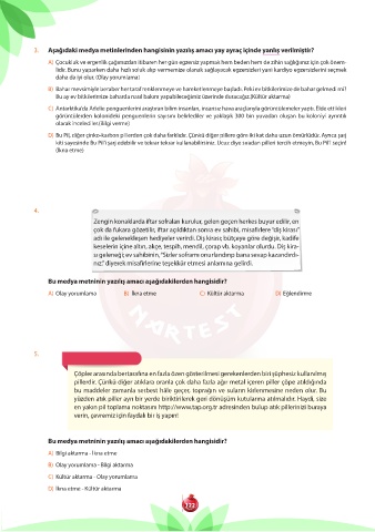 3. Aşağıdaki medya metinlerinden hangisinin yazılış amacı yay ayraç içinde yanlış verilmiştir?