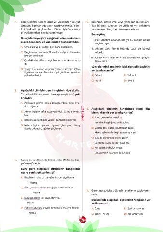 7. Bazı cümleler sadece özne ve yüklemden oluşur. 10. Bulunma, uzaklaşma veya yönelme durumların-