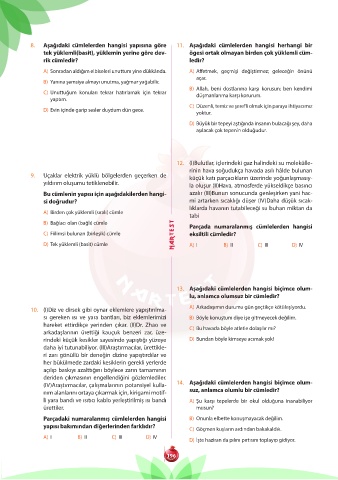 8. Aşağıdaki cümlelerden hangisi yapısına göre 11. Aşağıdaki cümlelerden hangisi herhangi bir