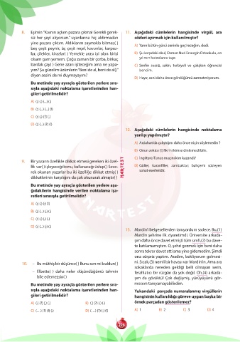 8. Eşimin “Karnın açken pazara çıkma! Gerekli gerek- 11. Aşağıdaki cümlelerin hangisinde virgül, ara