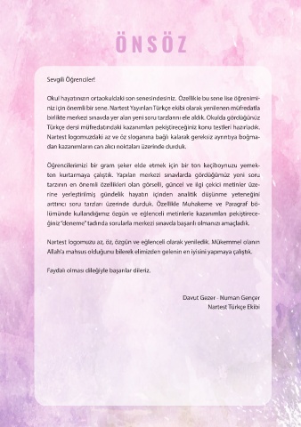 niz için önemli bir sene. Nartest Yayınları Türkçe ekibi olarak yenilenen müfredatla