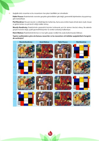 6. Aşağıda ünlü ressamlar ve bu ressamların öne çıkan özellikleri yer almaktadır.