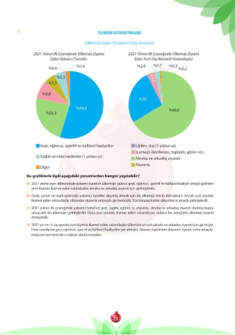 A) 2021 yılının aynı döneminde yabancı turistler ülkemize sadece gezi, eğlence, sportif ve kültürel faaliyet amaçlı gelirken