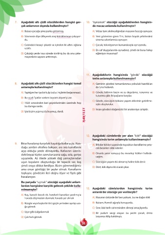 7. Aşağıdaki altı çizili sözcüklerden hangisi ger- 10. “oynamak” sözcüğü aşağıdakilerden hangisin-