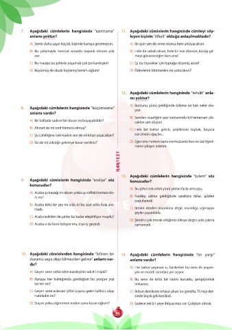 7. Aşağıdaki cümlelerin hangisinde “azımsama” 11. Aşağıdaki cümlelerin hangisinde cümleyi söy-