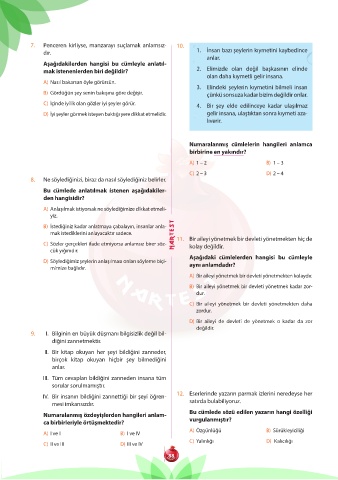 Numaralanmış cümlelerin hangileri anlamca