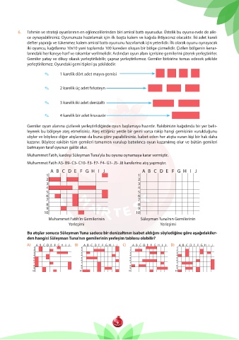 larındaki her kareye harf ve rakamlar verilmelidir. Ardından oyun alanı içerisine gemilerini çizerek yerleştirirler.