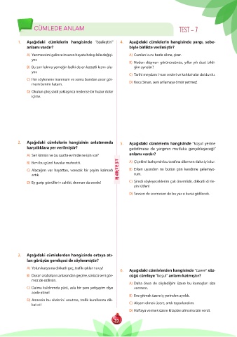 CÜMLeDe anLaM TEST – 7