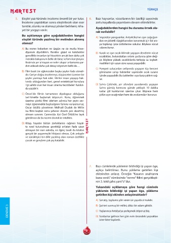 5. Eleştiri yazı türünde inceleme önemli bir yer tutar. 6. Bazı hayvanlar, vücutlarının bir özelliği sayesinde