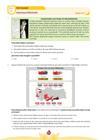 Yandaki görselde Türkiye’de kadınlara seçme ve seçilme hakkı verildiğini okuyan,