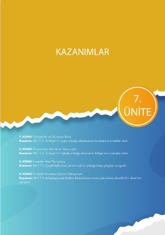 Kazanım: SB.7.7.1. Türkiye’nin üyesi olduğu uluslararası kuruluşlara örnekler verir.