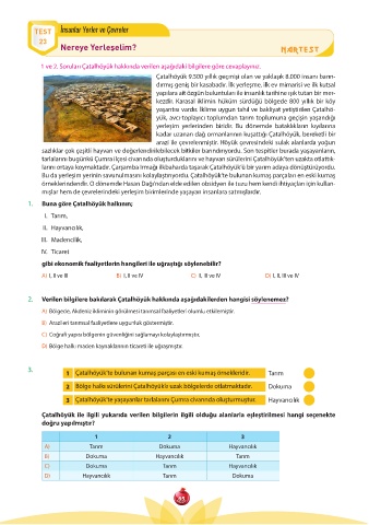 1 ve 2. Soruları Çatalhöyük hakkında verilen aşağıdaki bilgilere göre cevaplayınız.