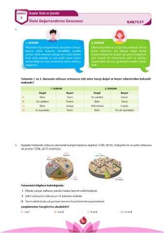 4. Aşağıda Türkiye’de nüfusun ekonomik faaliyet kollarına dağılımı (TÜİK, 2016), Türkiye’de kır ve şehir nüfusuna