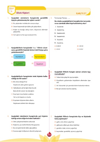 4. Aşağıdaki cümlelerin hangisinde şart kipinin 7. Aşağıdaki fiillerin hangisinin kip ve kişisinde