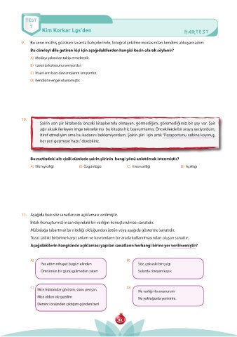 11. Aşağıda bazı söz sanatlarının açıklaması verilmiştir.