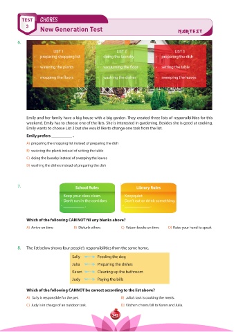 Emily and her family have a big house with a big garden. They created three lists of responsibilities for this