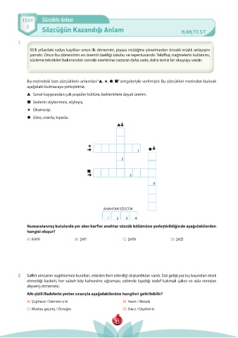 Numaralanmış kutularda yer alan harfler anahtar sözcük bölümüne yerleştirildiğinde aşağıdakilerden