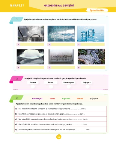 d) Gaz hâldeki bir maddenin çevreye ısı vererek sıvı hâline geçmesine …………….. denir.