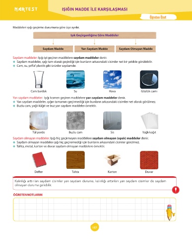 Yarı saydam maddeler: Işığı kısmen geçiren maddelere yarı saydam maddeler denir.