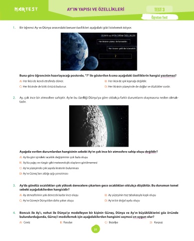 AY’IN YAPISI VE ÖZELLİKLERİ TEST 3