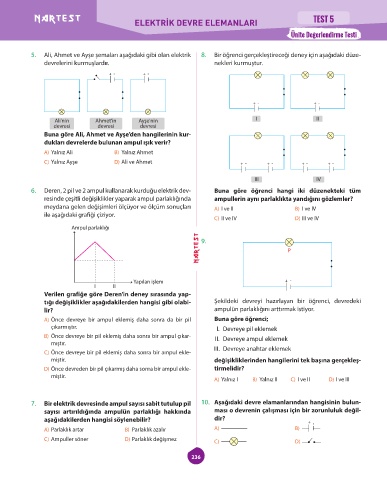 5. Ali, Ahmet ve Ayşe şemaları aşağıdaki gibi olan elektrik 8. Bir öğrenci gerçekleştireceği deney için aşağıdaki düze-