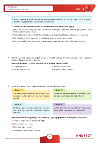 9. Aşağıda bir yazarın farklı metinlerinden alınmış cümleleri verilmiştir.