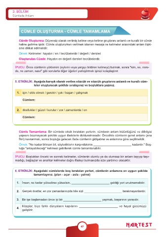CÜMLE OLUŞTURMA - CÜMLE TAMAMLAMA