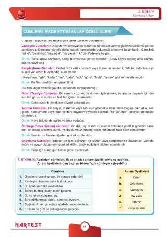 7. ETKİNLİK: Aşağıdaki cümleleri, ifade ettikleri anlam özellikleriyle eşleştiriniz.