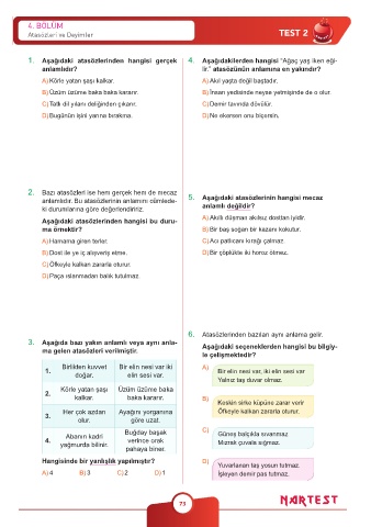 Atasözleri ve Deyimler TEST 2