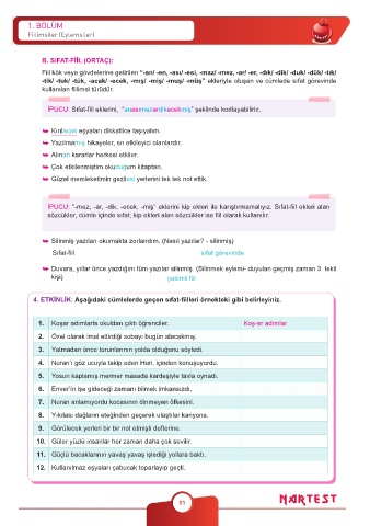 4. ETKİNLİK: Aşağıdaki cümlelerde geçen sıfat-fiilleri örnekteki gibi belirleyiniz.