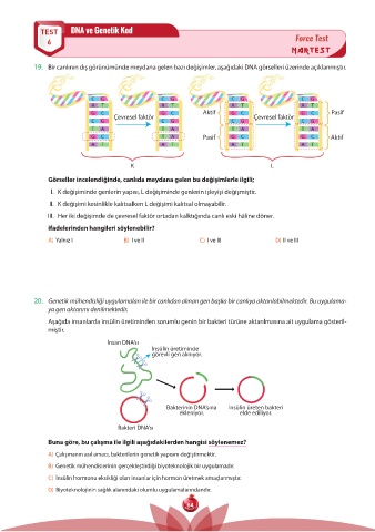 19. Bir canlının dış görünümünde meydana gelen bazı değişimler, aşağıdaki DNA görselleri üzerinde açıklanmıştır.