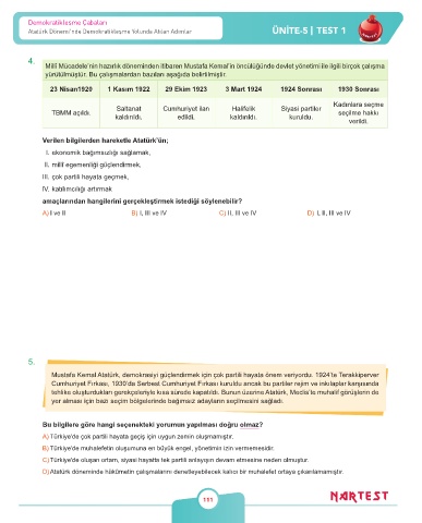 Atatürk Dönemi'nde Demokratikleşme Yolunda Atılan Adımlar ÜNİTE-5 | TEST 1